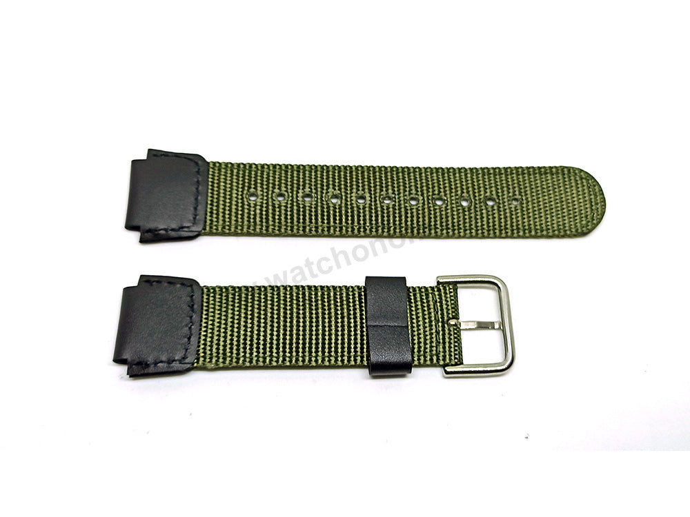 Fits/For Casio AQW-100B-3AV - Army Green Nylon Textile Knit Replacement Watch Band / Strap Belt