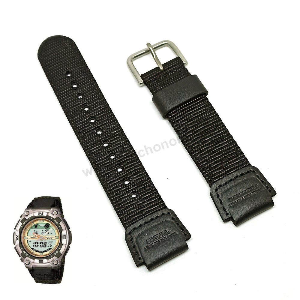 Fits/For Casio AQW-100B-3AV - Black Nylon Textile Knit Replacement Watch Band / Strap Belt