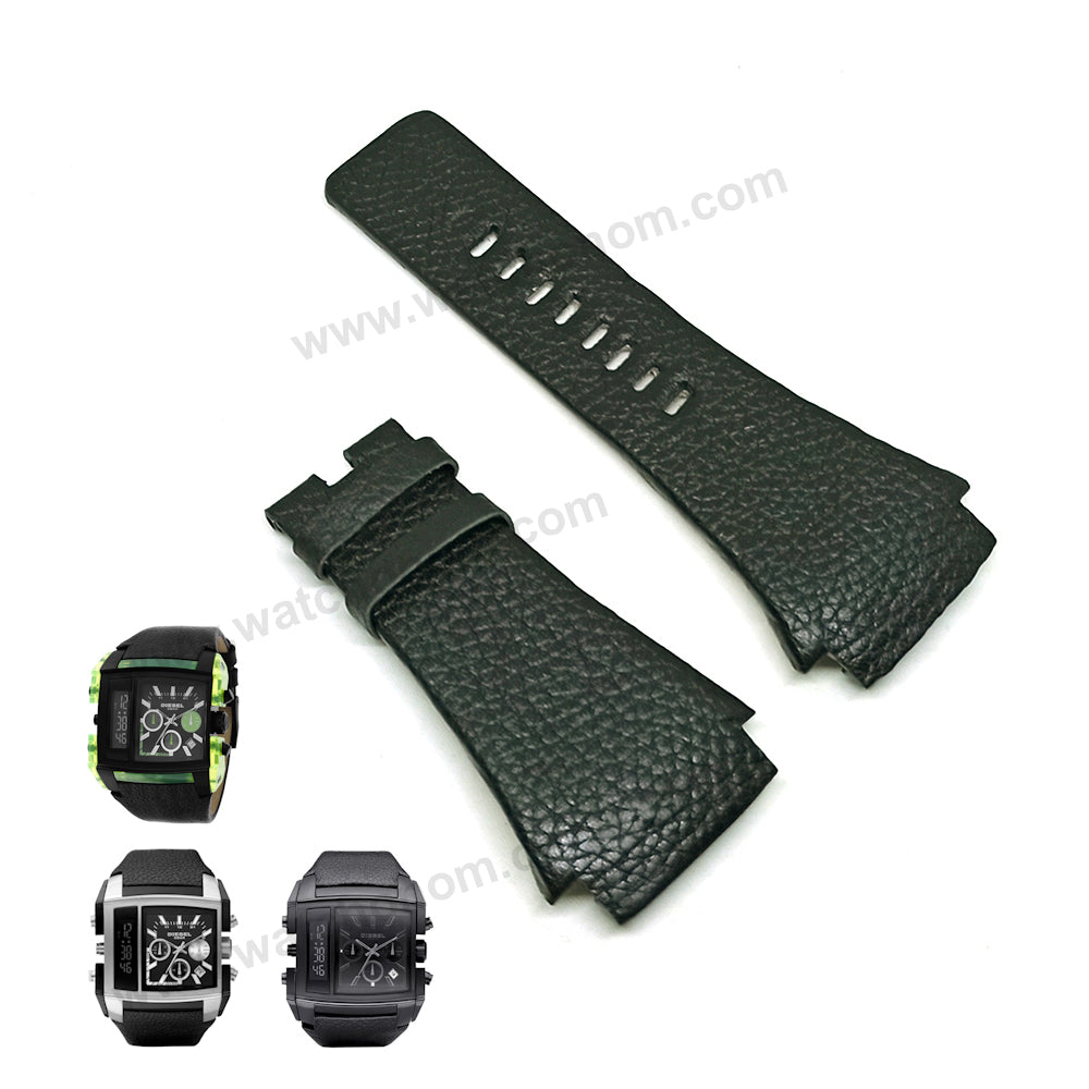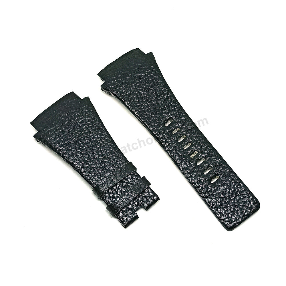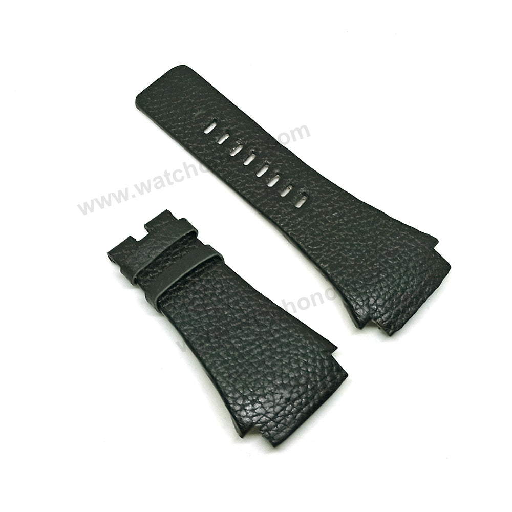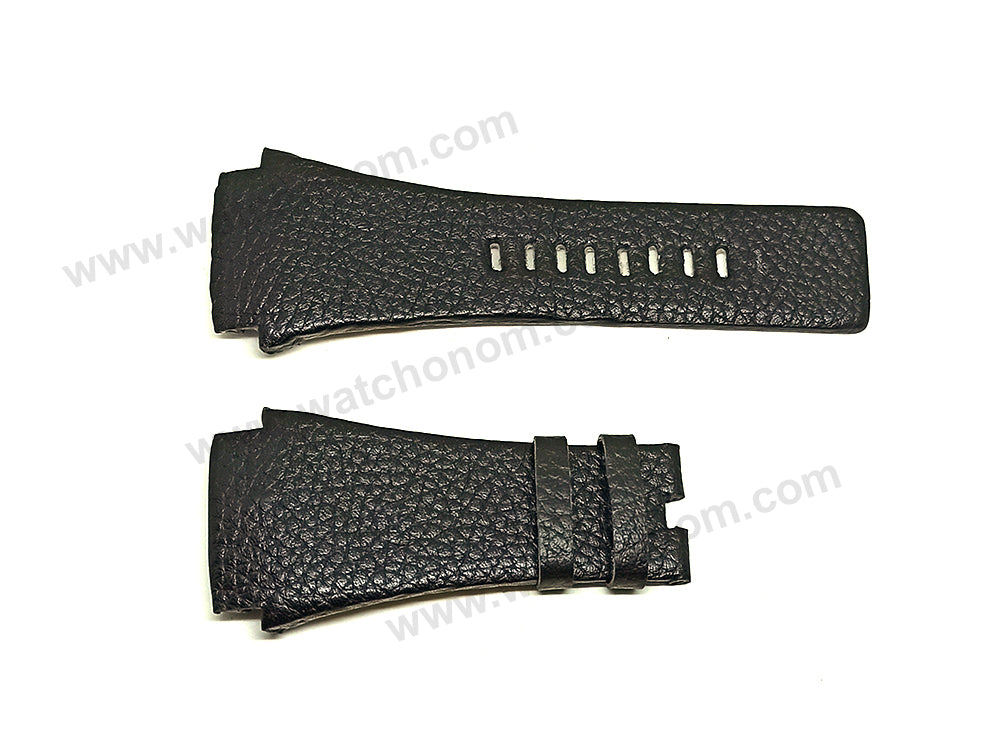 Fits/For Diesel DZ7153 , DZ7191 , DZ7192 - Black Genuine Leather Replacement Watch Strap Band Belt