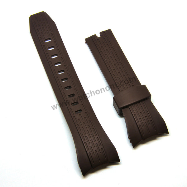 26mm Brown Rubber Curved end Watch Band Strap Compatible For Seiko Lord Chronograph 7T04-0AP0 - SPC194P1 , SNAE16P1