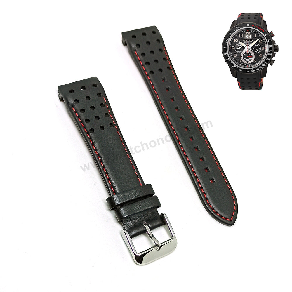 Fits/For Seiko Sportura Chronograph 7T04-0AL0 - SPC141P1 - Black Leather on Red Stitched Replacement Watch Strap Band Belt