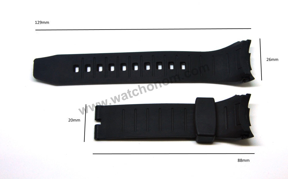 26mm Black Rubber Curved end Watch Band Strap Compatible For Seiko Lord Chronograph 7T92-0PK0 - SNDE67P1 , SNDE78P1 , SNDE81P1