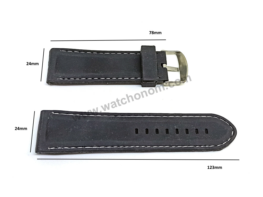 26mm Black Rubber / Soft Silicone White Stitching Replacement Watch Band Strap