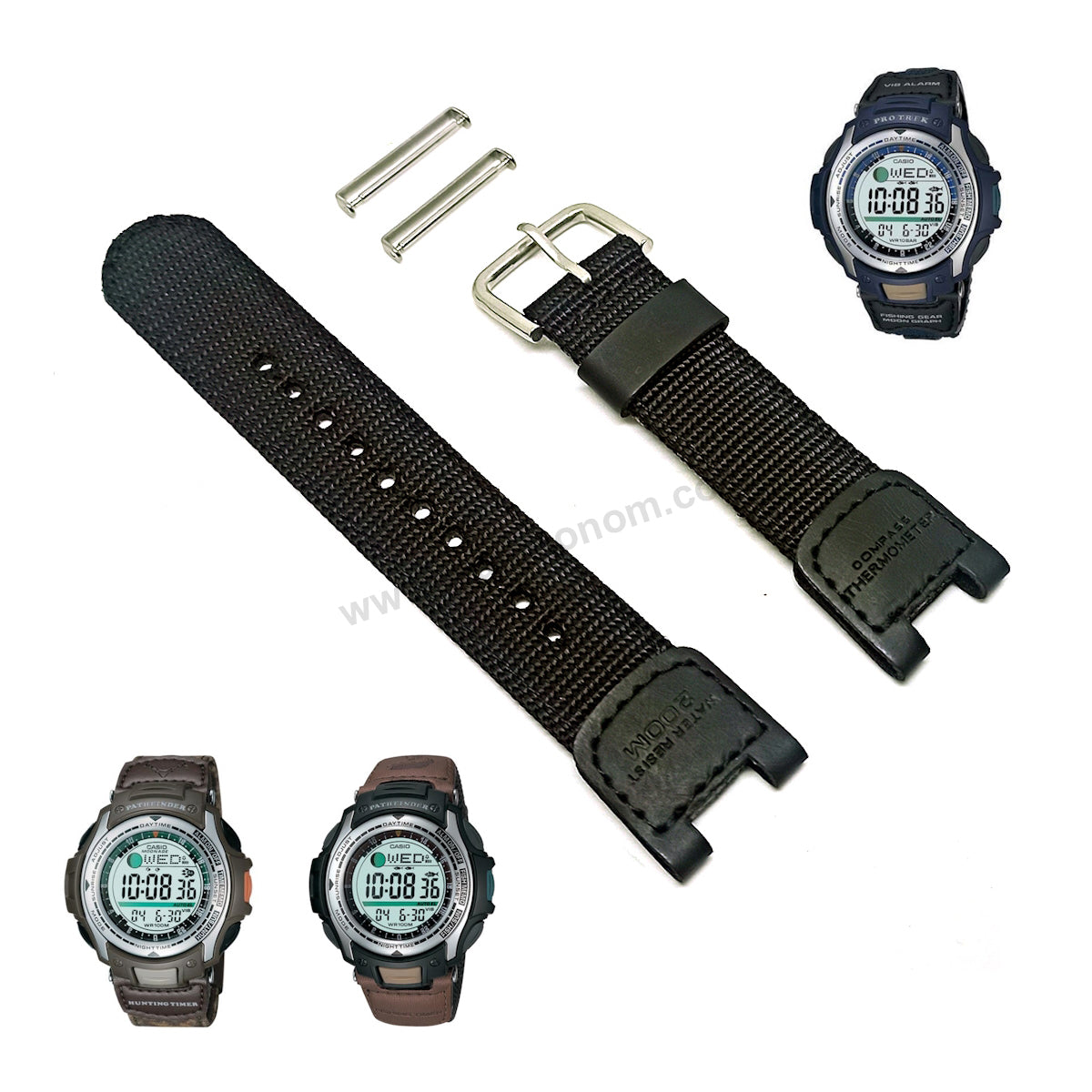 Fits/For Casio PAS-400B , PAS-410B , PRS-400B Protrek Fishing Gear -Black Nylon Textile Knit Replacement Watch Band / Strap Belt