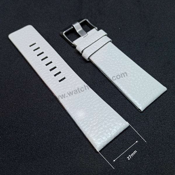 Fits/For Diesel DZ1405 , DZ1476 Master Chief - 27mm White Genuine Leather Watch Band Strap Belt