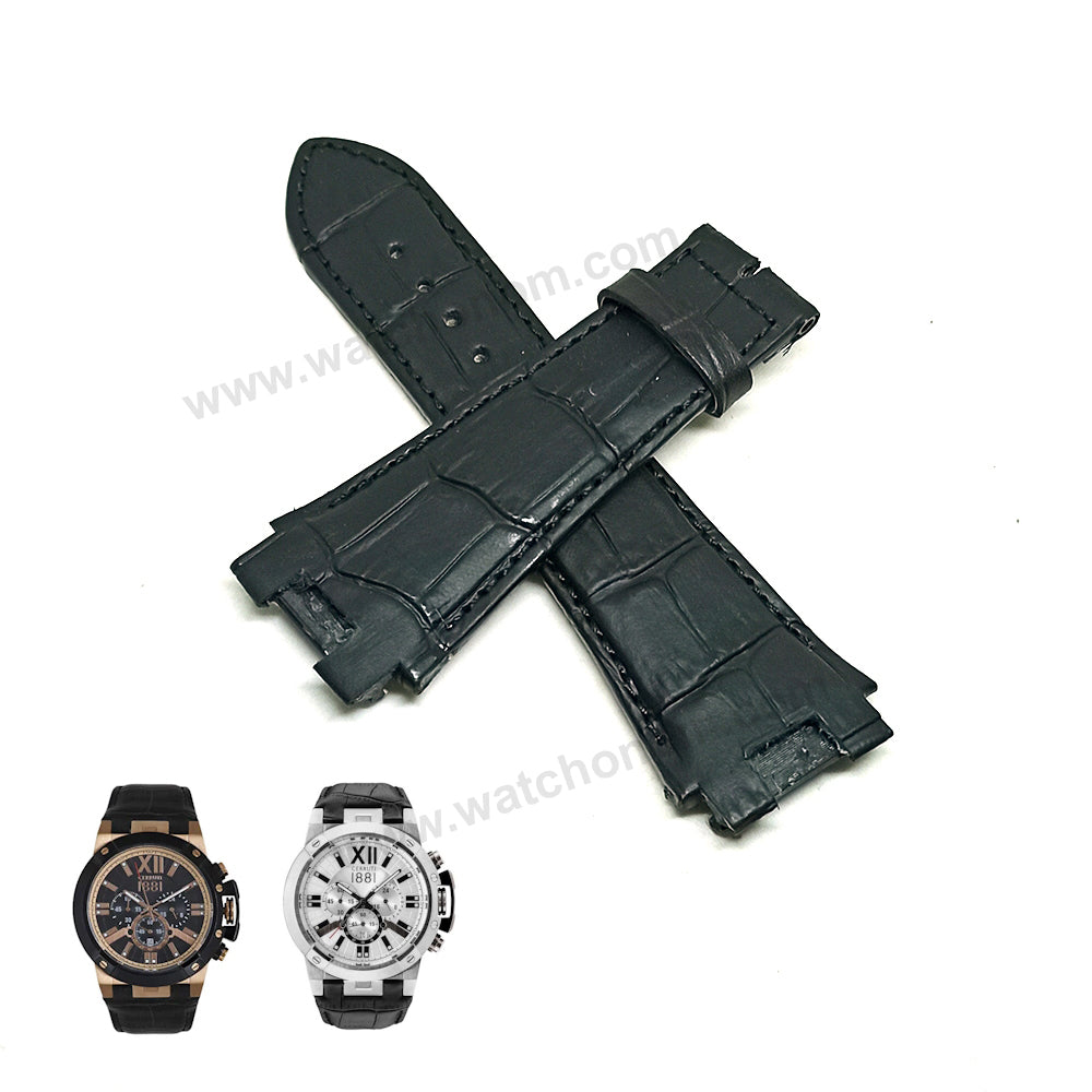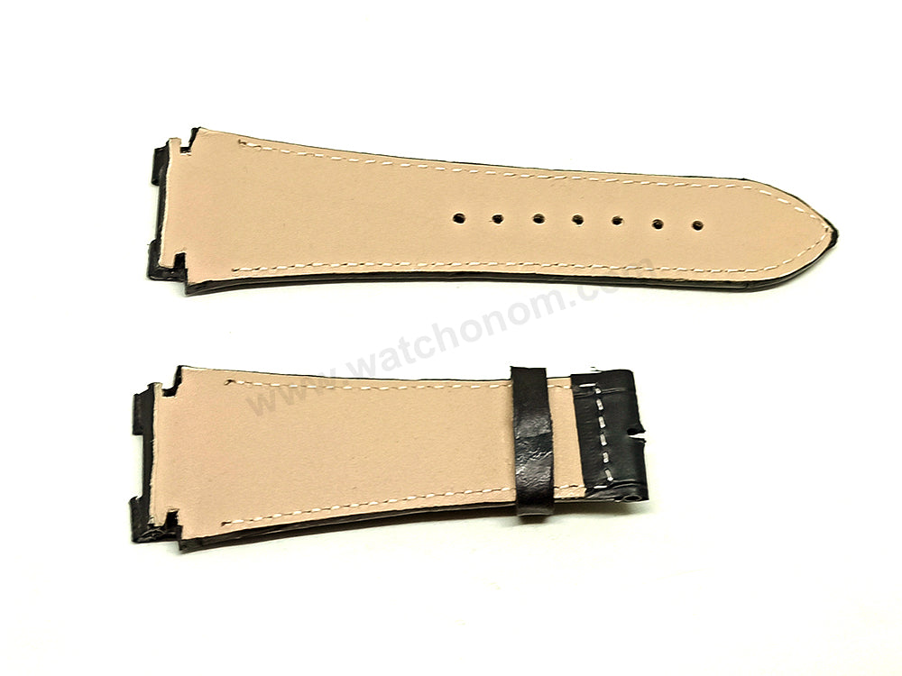 Fits/For Cerruti 1881 CRA145SN04BK , CRA145SRB02BK - 24mm Black Genuine Leather Replacement Watch Strap Band