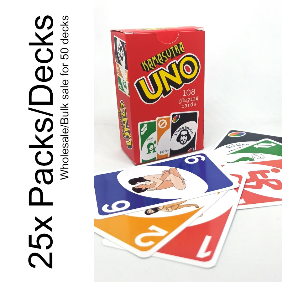 25x Packs/Decks - Wholesale - Uno Kamasutra - Sex Positions Printed 108 Playing Uno Cards - Uno Card Game Night Party