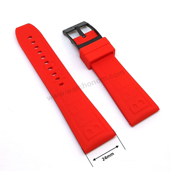 Fits/ For Breitling Diver Pro III 3 - 24mm Red Rubber / Silicone Replacement Watch Band Strap 24-20