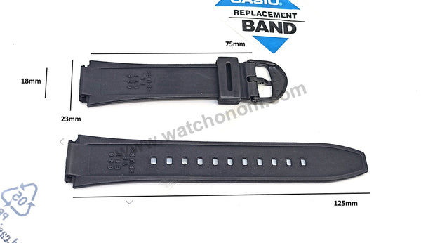 Fits/For Casio AW-80 , AW-80V , AW-80D , AW-82D , AW-82 , AW-82B , WV-58 , W-211 - Black Rubber 18mm Replacement Watch Band Strap
