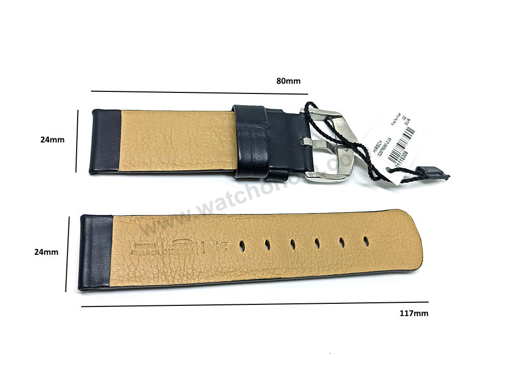 Hirsch Aviator 02075050-2 - 24mm extravagant Black Genuine Leather Watch Band Strap