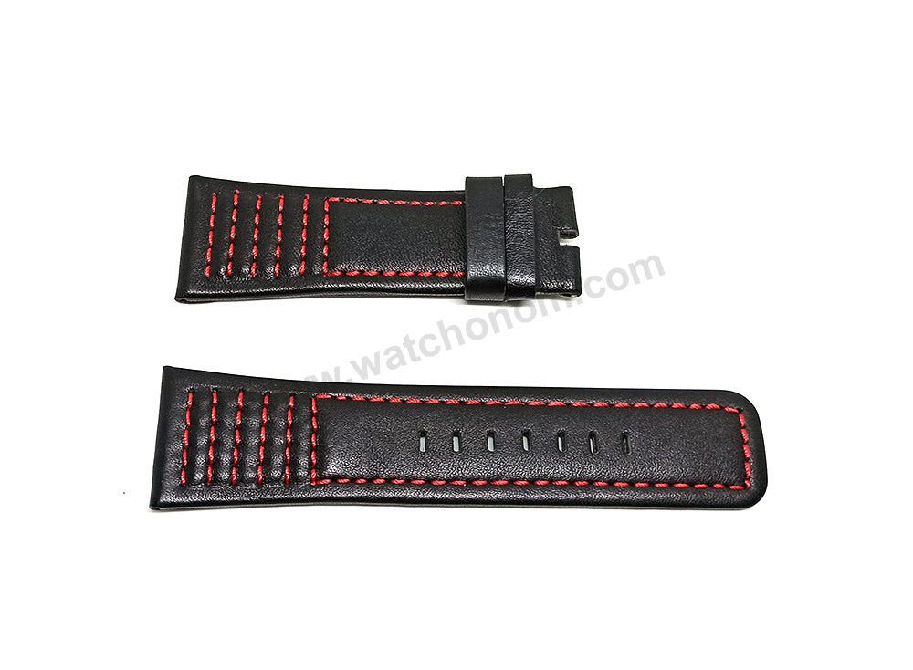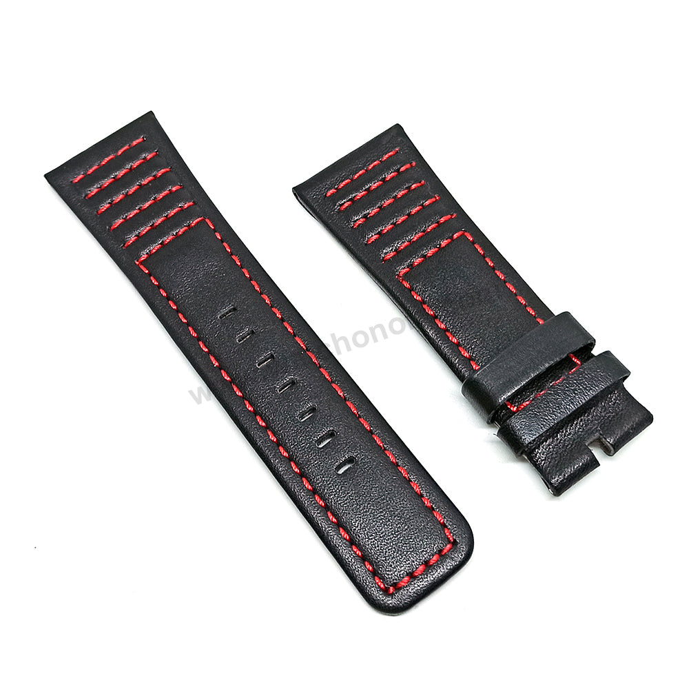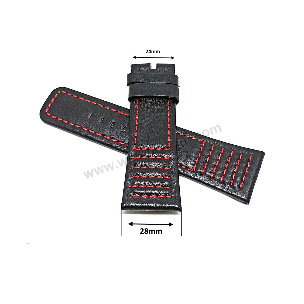 Fits / For Seven Friday M3 , P1 , P3 , S1 , S3 - 28mm Black Genuine Leather on Red Stitched Replacement Watch Band Strap