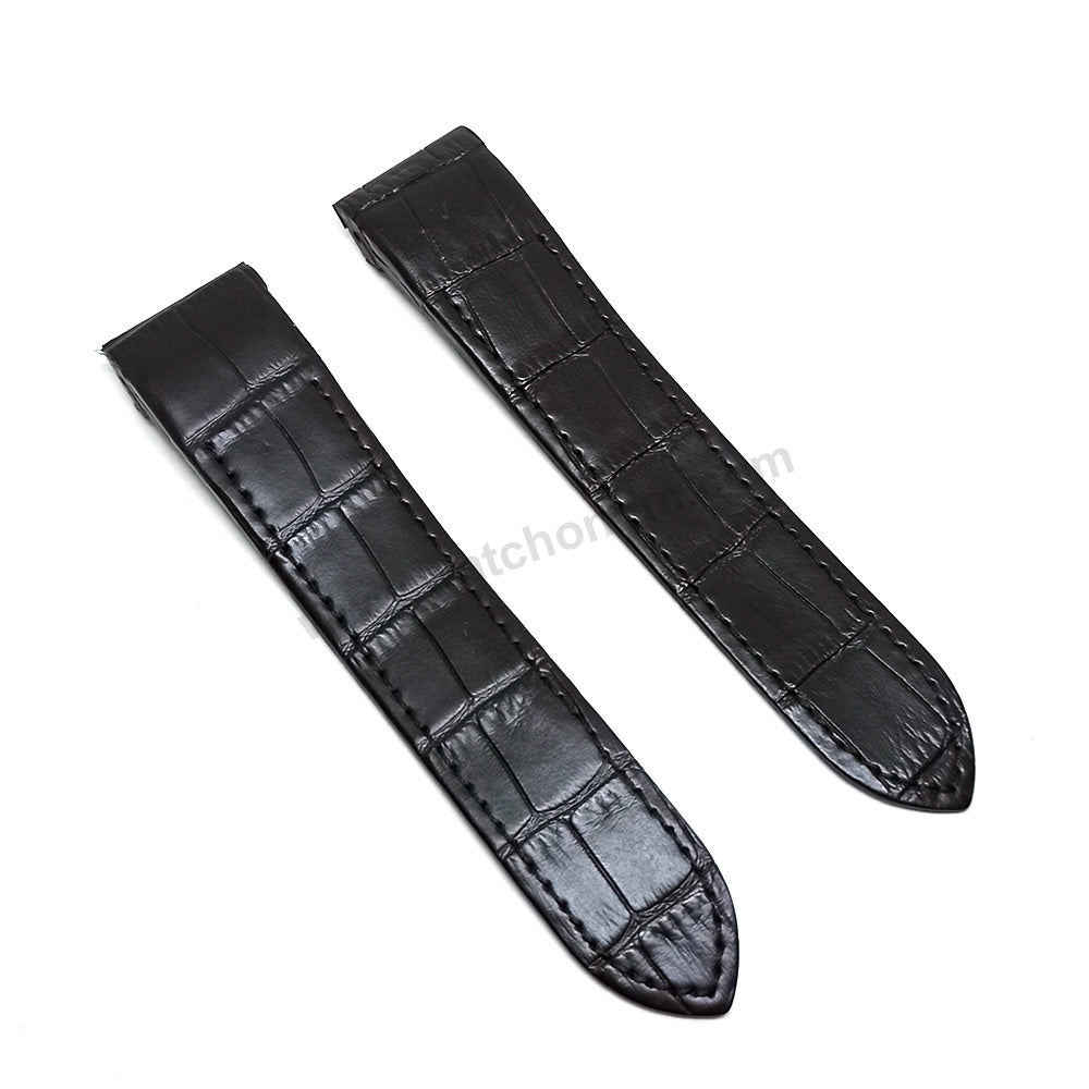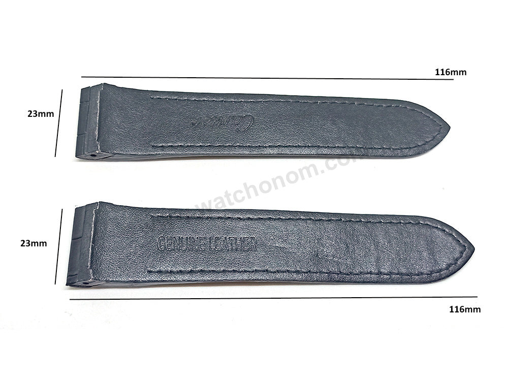 23mm Black Genuine Leather Replacement Watch Strap Band Fits with Cartier Santos