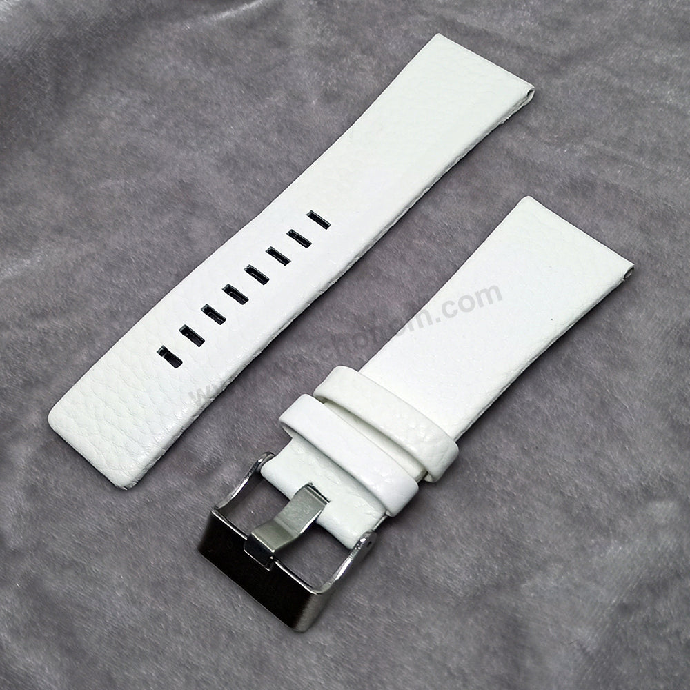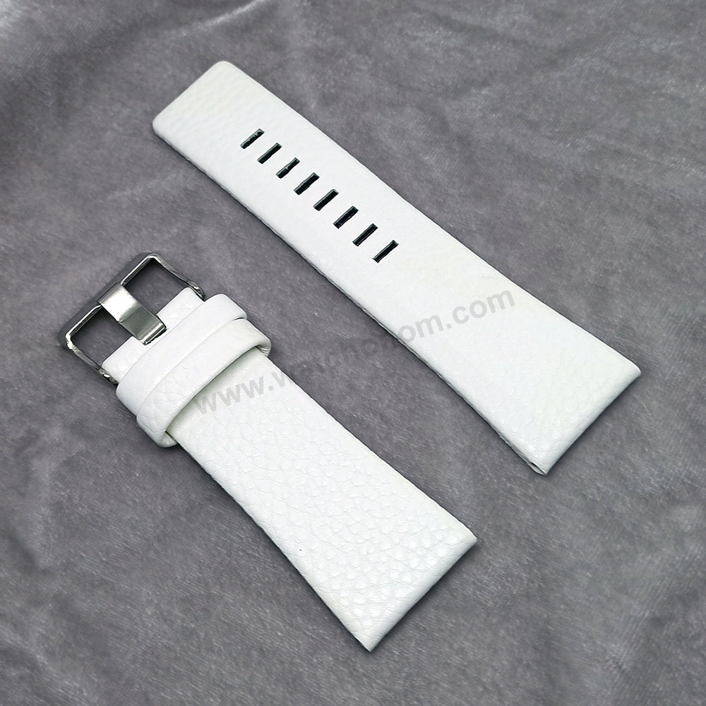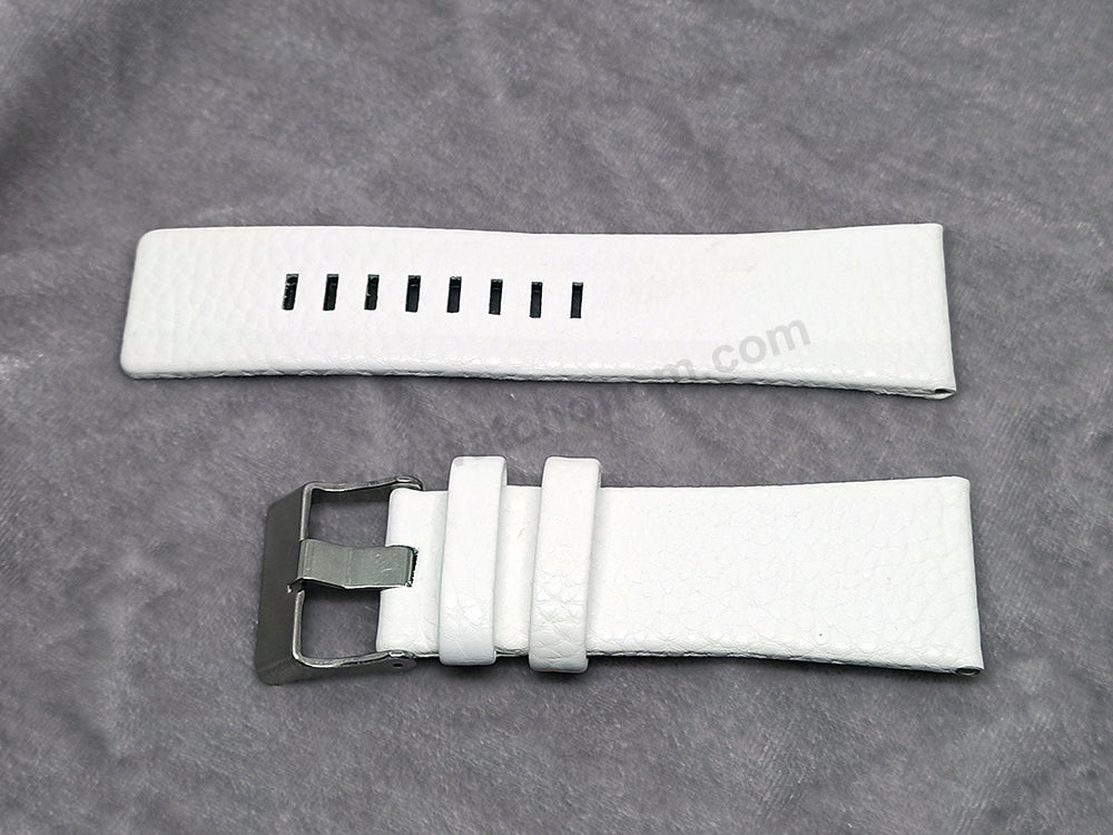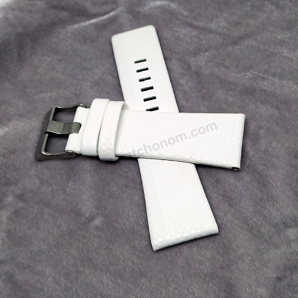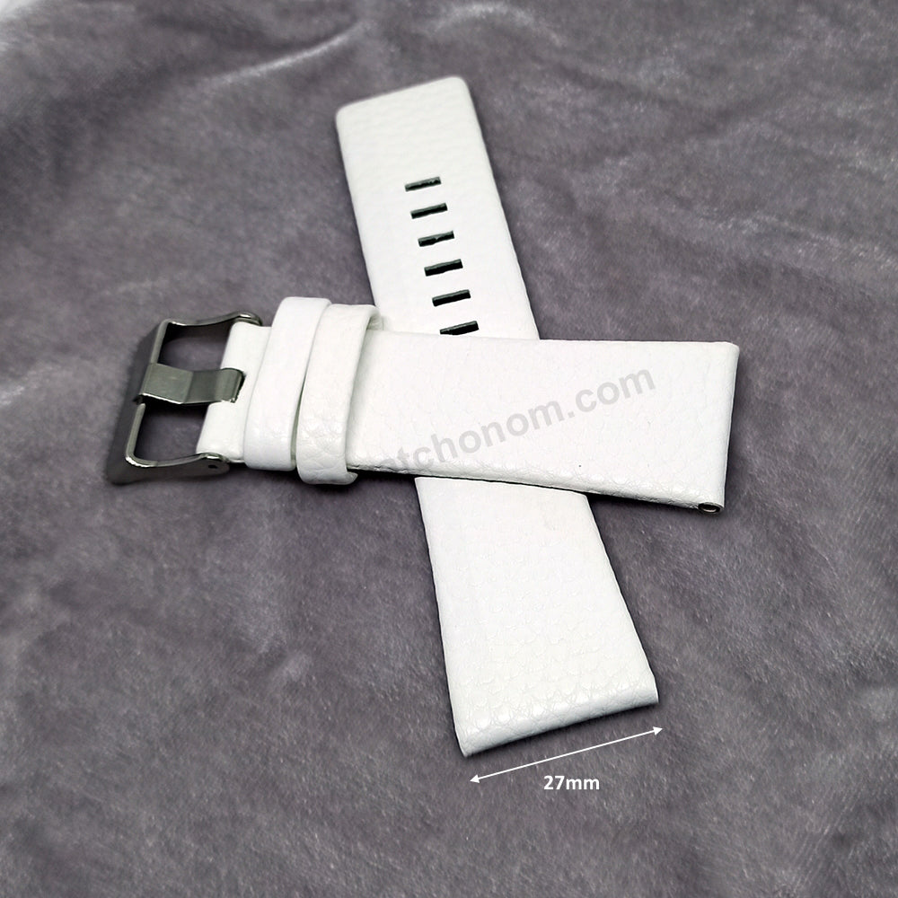 Fits/For Diesel DZ1451 Time 3 hands - 27mm White Genuine Leather Watch Band Strap Belt