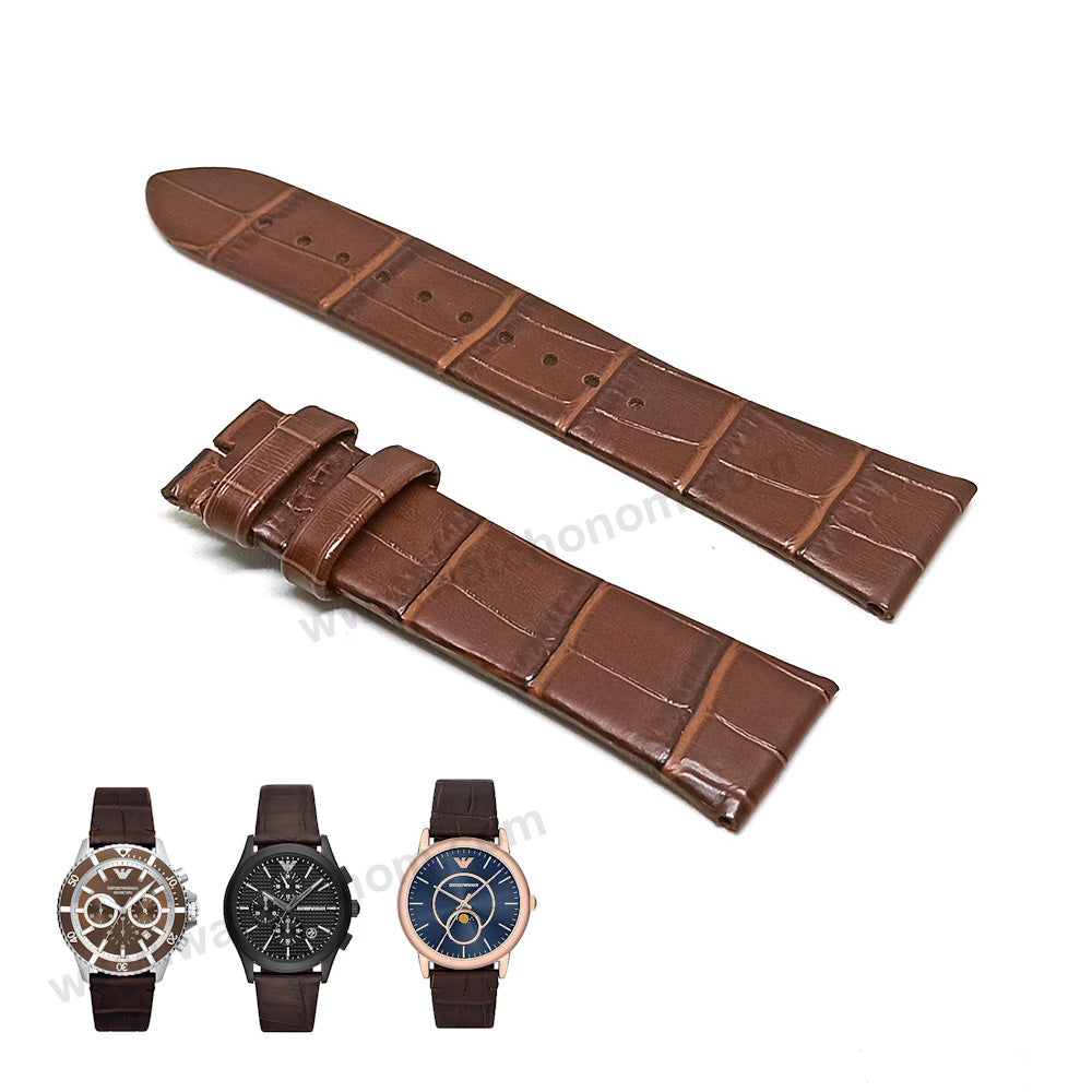 Fits/For Emporio Armani AR11486 , AR11549 , AR11566 Paolo- 22mm Brown Leather Replacement Watch Band Strap Belt