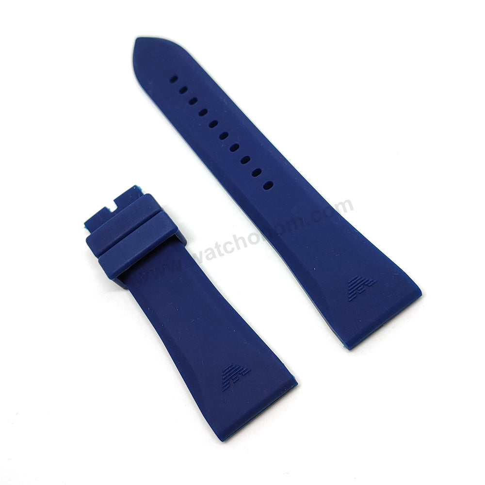 Fits/For Emporio Armani AR0335 , AR0499 - 24mm Black Rubber Silicone Replacement Watch Band Strap Belt