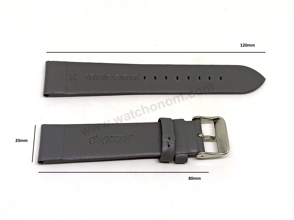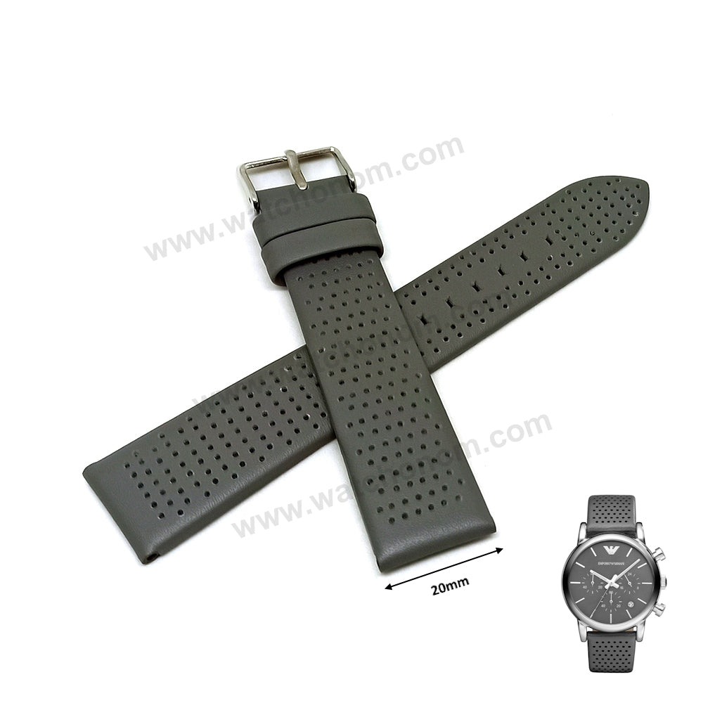 Fits/For Emporio Armani Luigi AR1735 , AR1730 - 20mm Gray Leather Replacement Watch Band Strap Belt