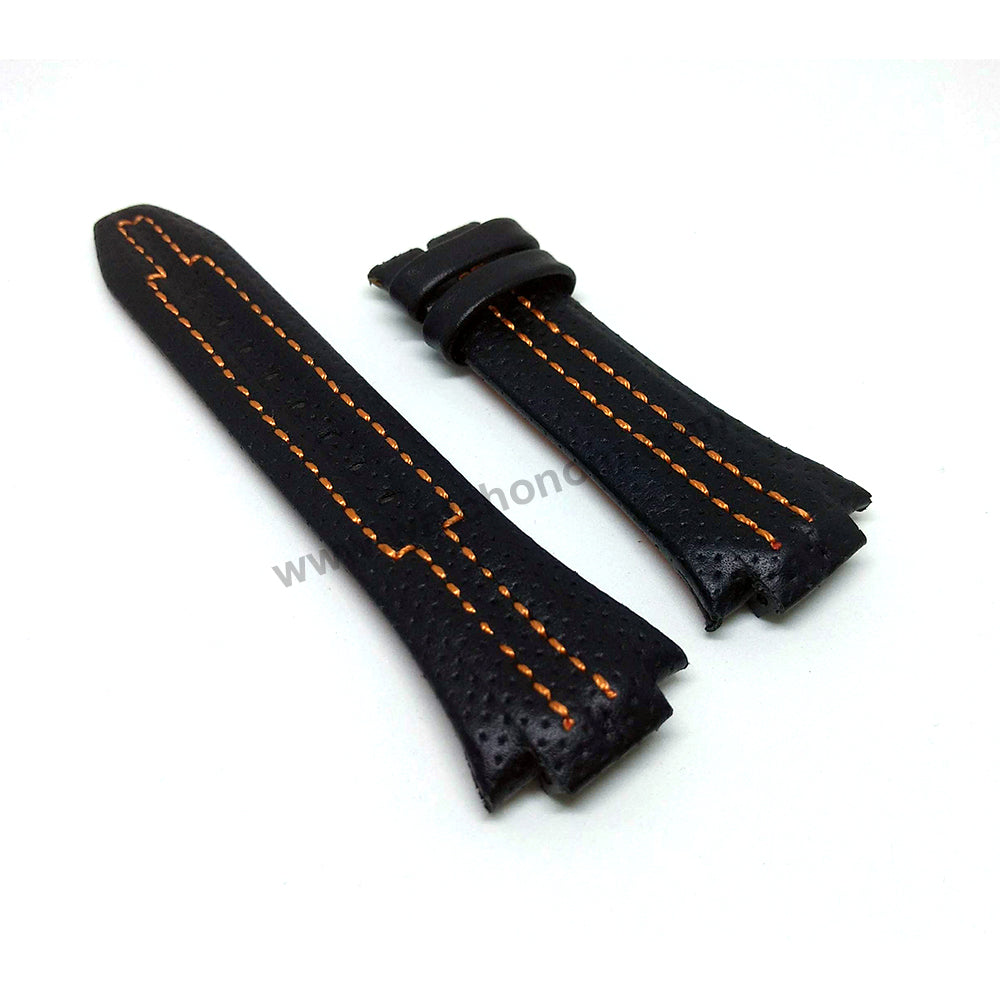 Seiko Sportura 7T62-0ED0 - SNA595P2 , H023-00E0 - SNJ011P2 Fits with 15mm Handmade Orange Stitch on Black Genuine Leather Watch Band Strap