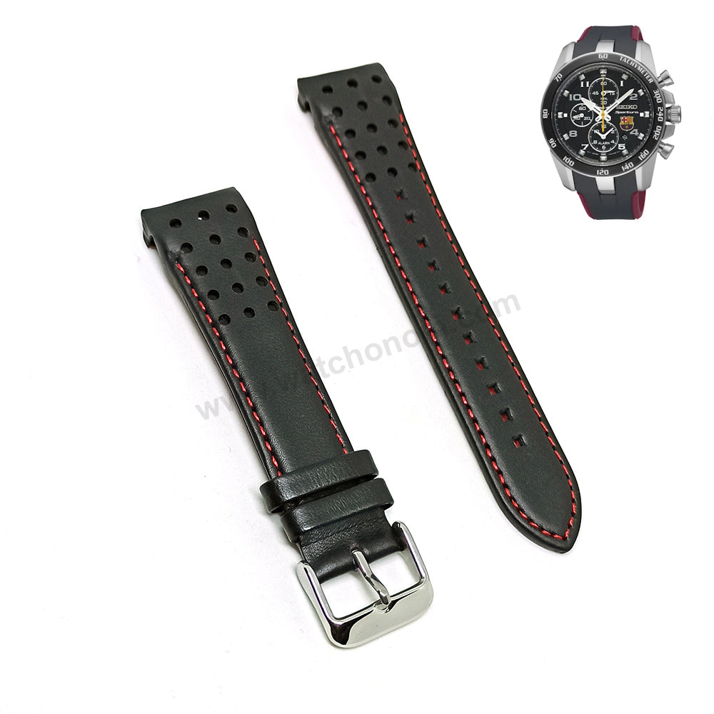 Fits/For Seiko Sportura Barcelona 7T62-0LC0 - SNAE93P1 - Black Leather on Red Stitched Replacement Watch Strap Band Belt