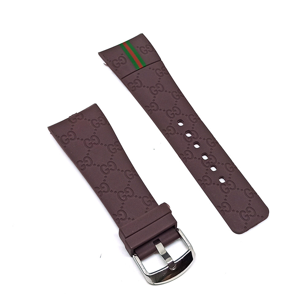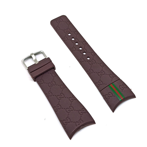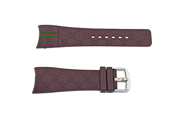 26mm Brown Rubber Watch Band / Strap Compatible with Gucci YA114-2/071 i-gucci digital watch 114, 114-2, YA114207, 316L