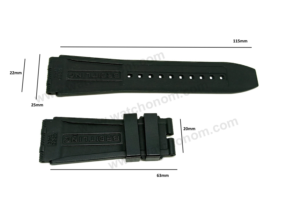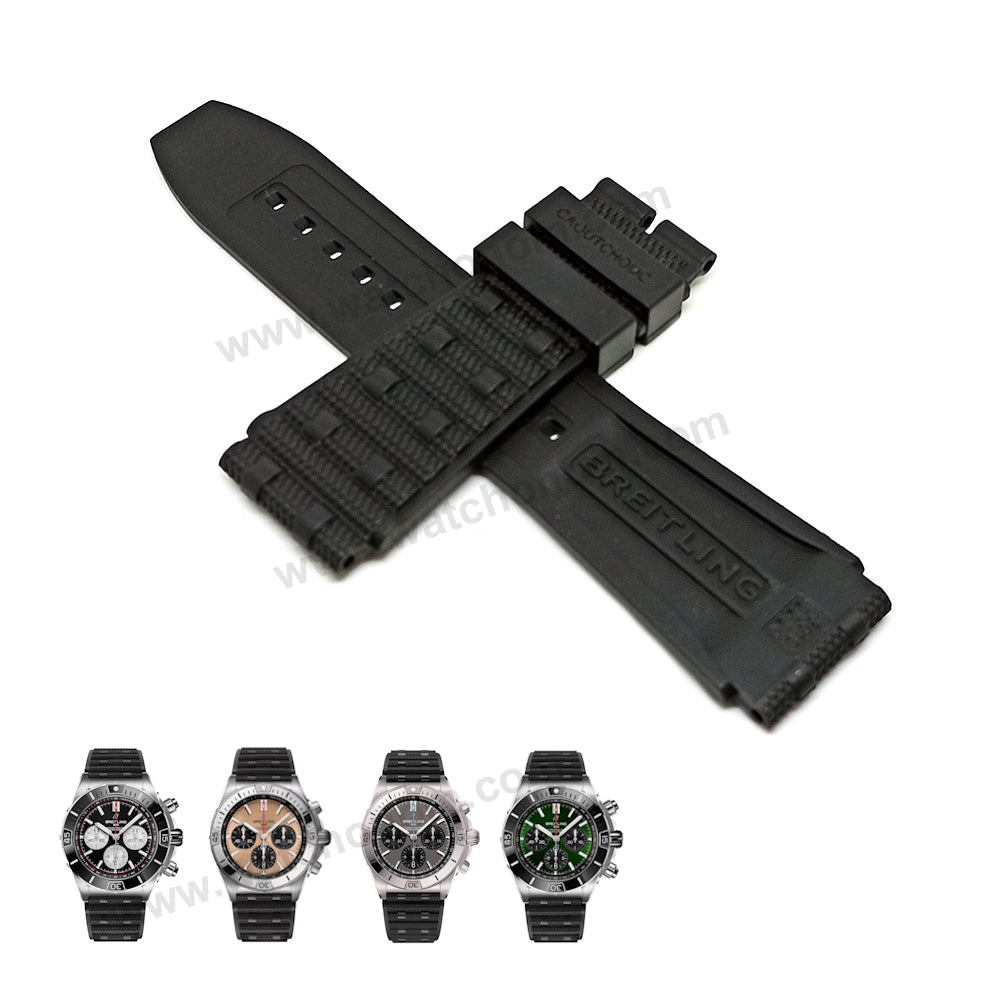 Fits/For Breitling Chronomat B01 PB0134 , RB0134 , RB1930 , UB0134 , UB0136 , I19320 - 22mm Black Rubber/Silicone 22-20 301S , 300S Rouleaux Replacement Watch Band Strap Belt