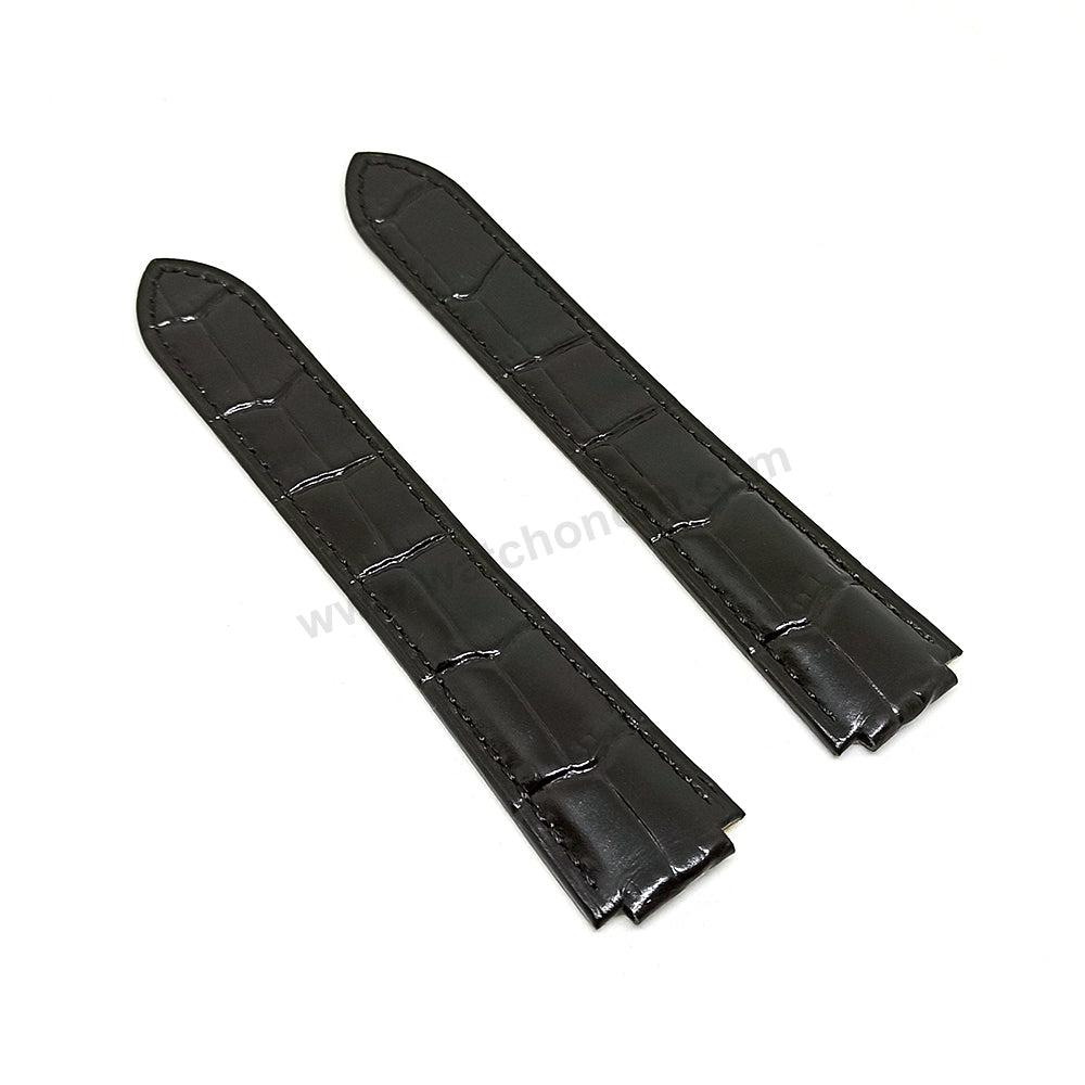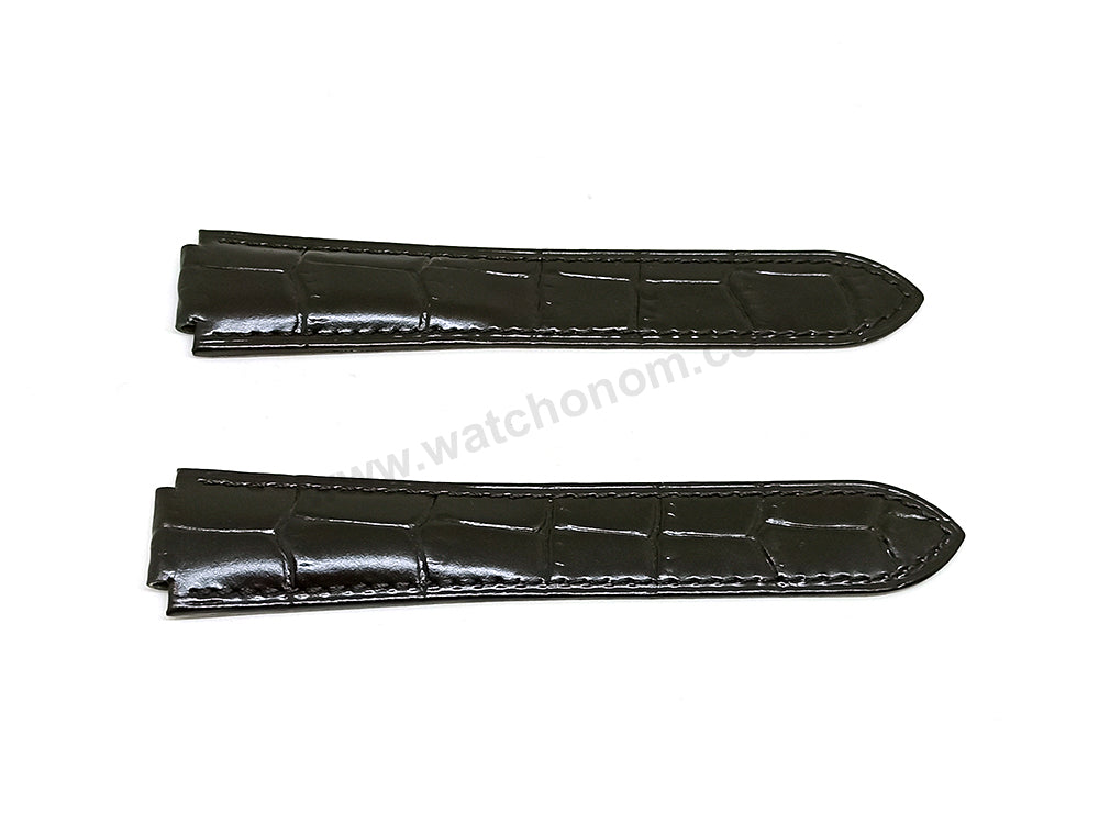 Fits/For Cartier Ballon Bleu - 22mm-14mm Black Genuine Leather Replacement Watch Strap Band