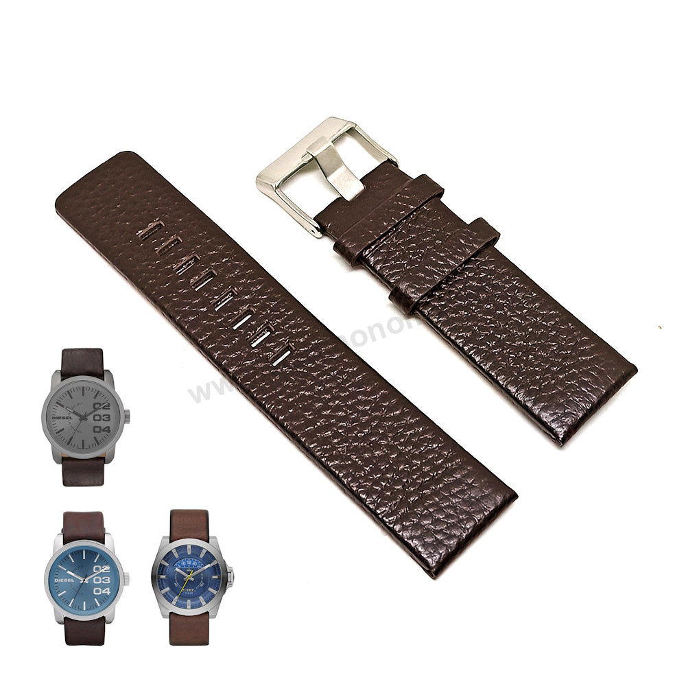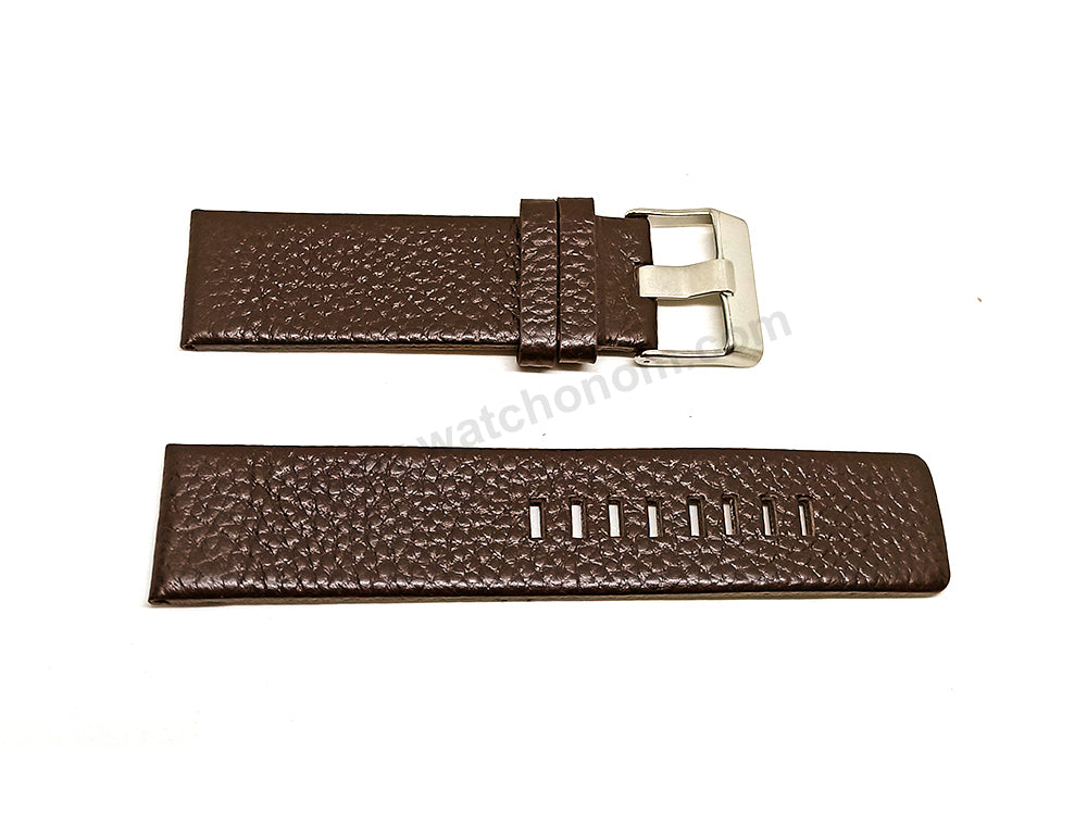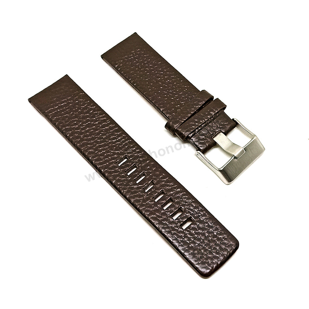 Fits/For Diesel DZ1467 , DZ1512 , DZ1661 Time 3 hands Franchise -46 - 24mm Dark Brown Genuine Leather Replacement Watch Strap Band Belt