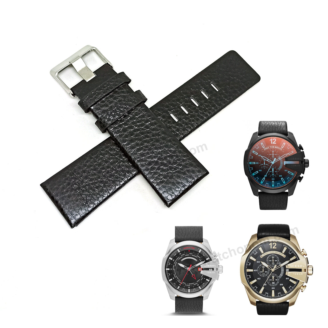 Fits/For Diesel DZ4320 , DZ4323 , DZ4344 Mega Chief - 26mm Black Genuine Leather Replacement Watch Strap Band Belt