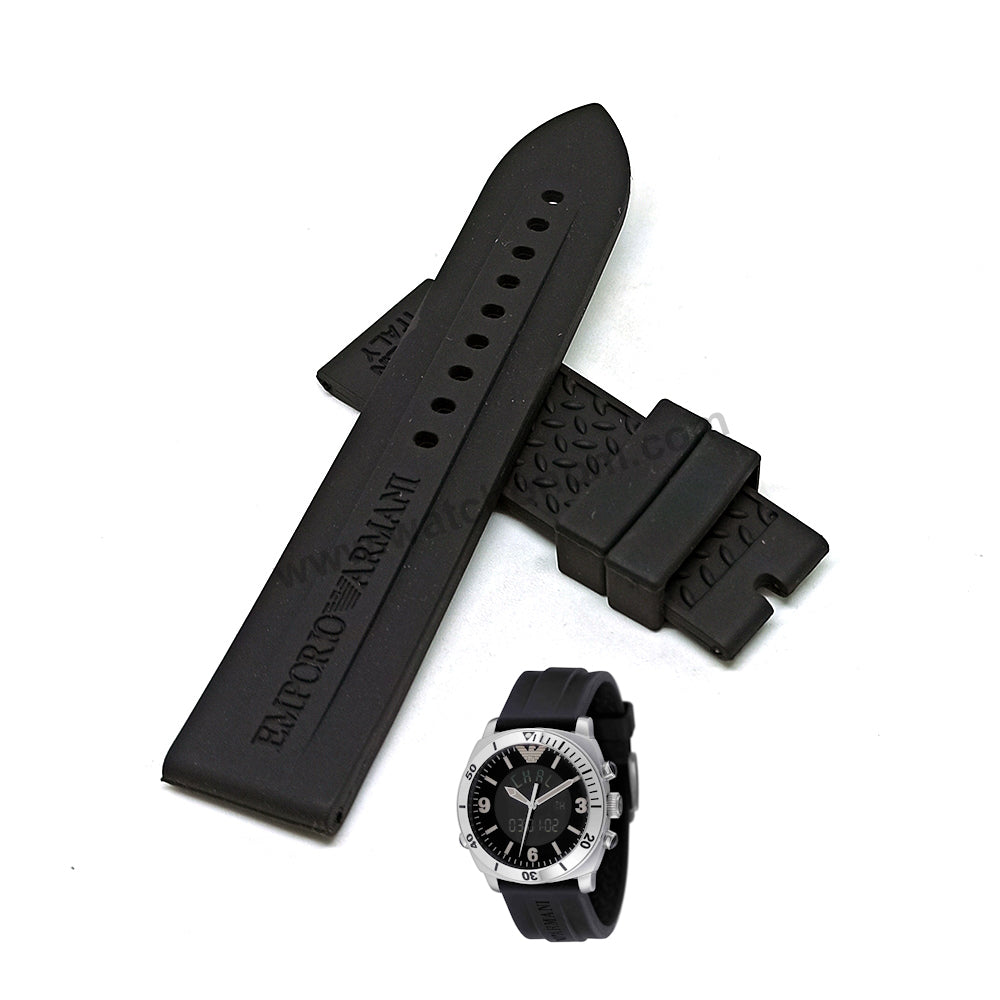 Fits/For Emporio Armani AR5826 - 23mm Black Rubber Replacement Watch Band Strap Belt