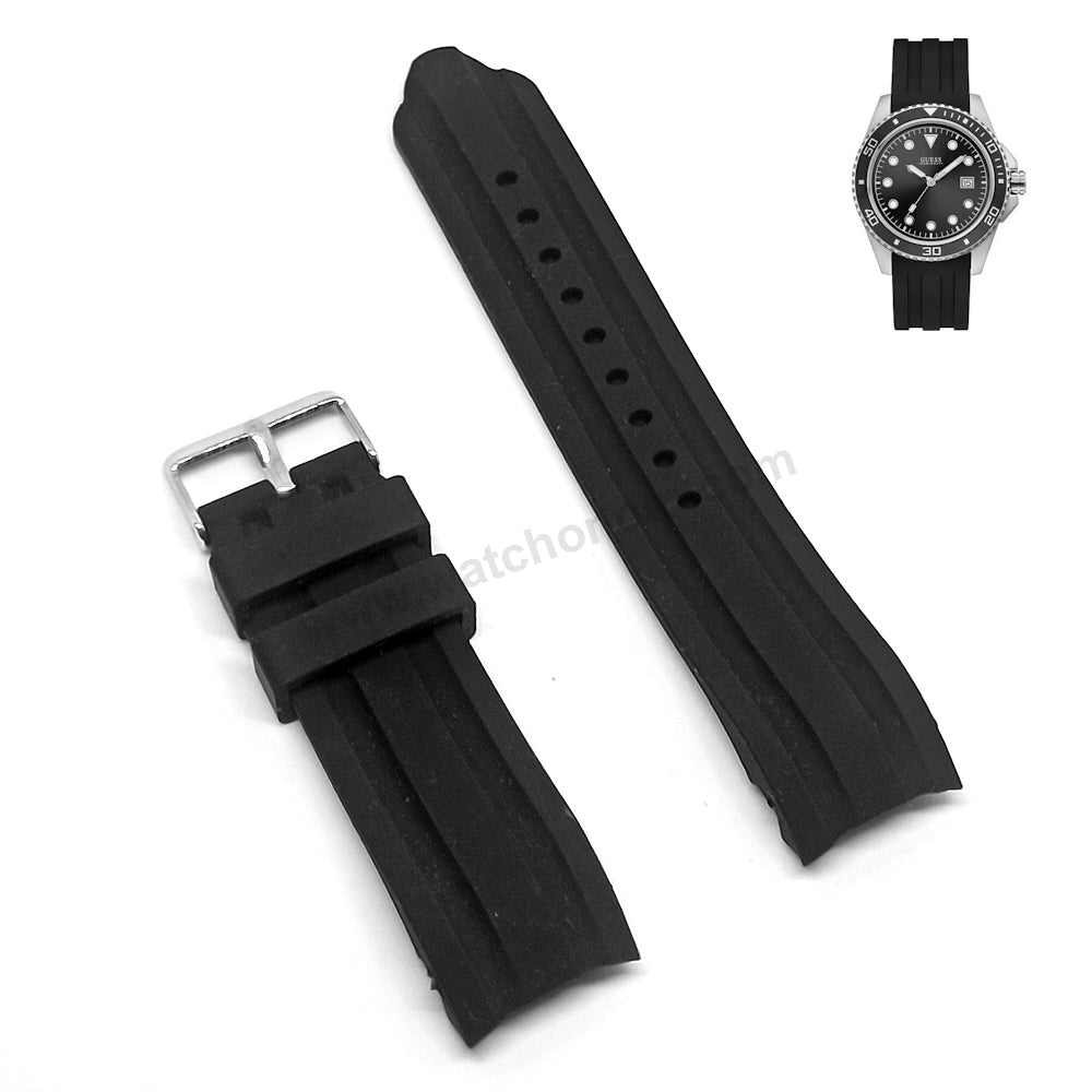 Fits/For Guess W1109G1 Crew - Black Silicone Replacement Watch Band Belt Strap Belt