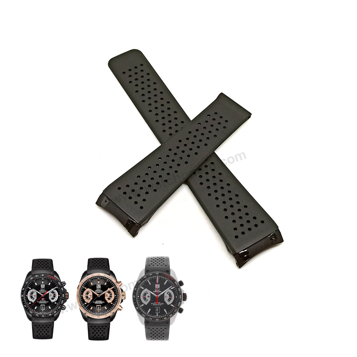 Fits/For TAG Heuer Grand Carrera Caliber 17 RS - 22mm Black Rubber FT6016 Replacement Watch Band Strap Belt