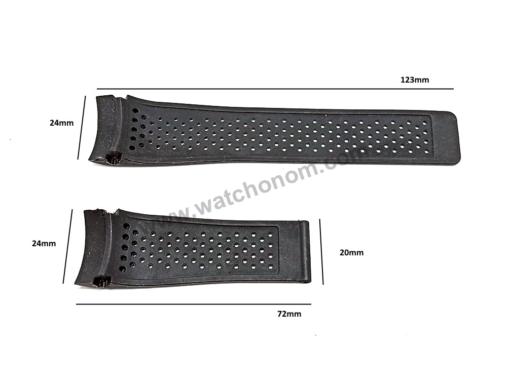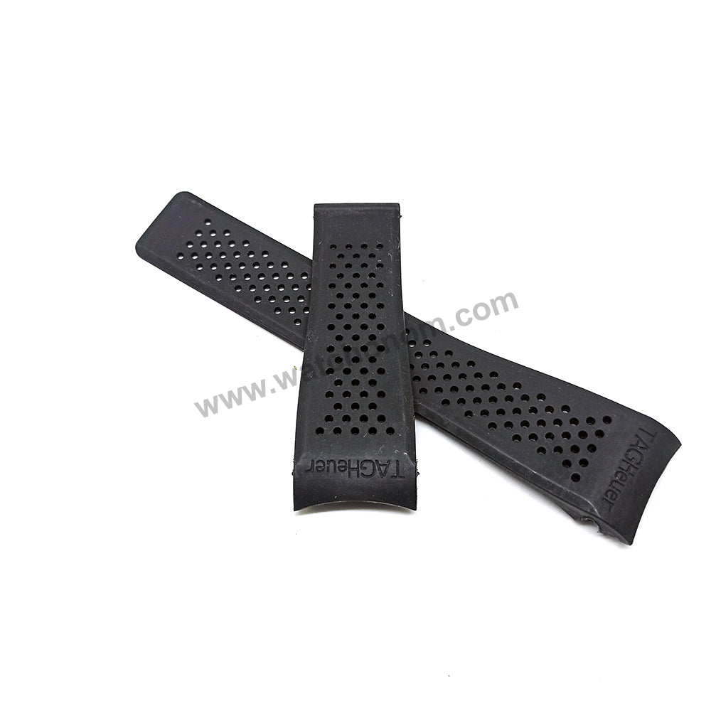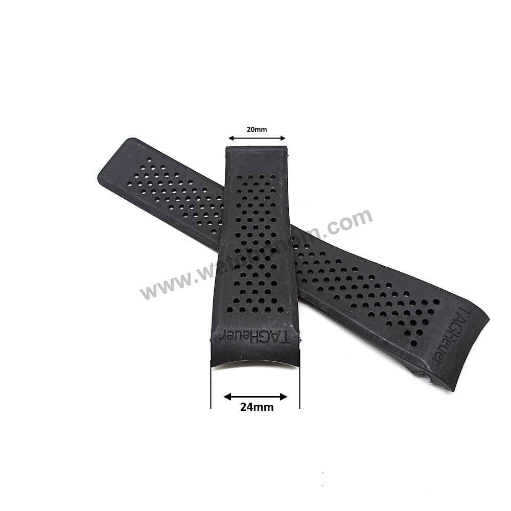 24mm Black Perforated Rubber Body Replacement Watch Strap Band Fits Tag Heuer