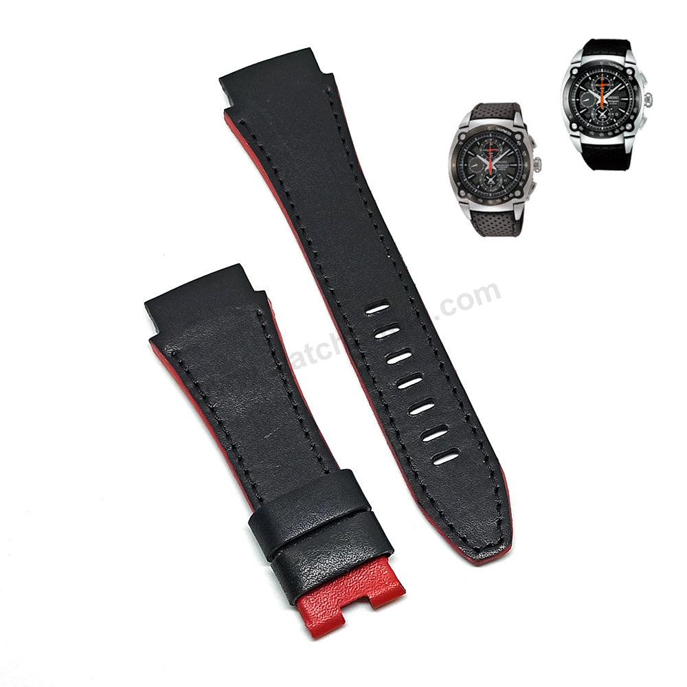 Fits/For Seiko Sportura 7T62-0HH0 - SNAA95P2 , SCJC029 - Handmade Black Leather with Red Line Watch Strap Band