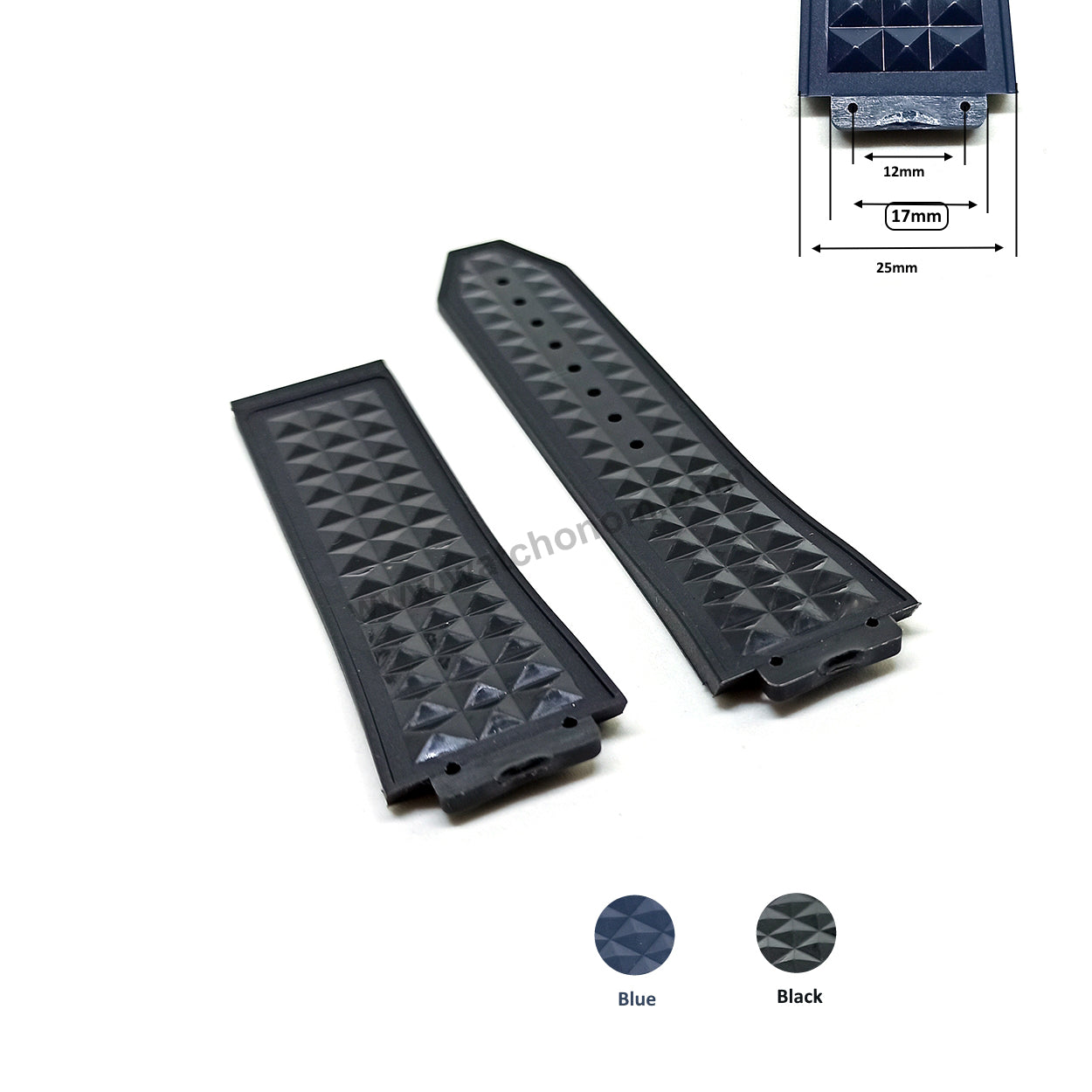 17mm Black and Navy Blue Rubber Watch Band Strap Compatible with Hublot Bigbang Depech Mode "Limited 250" 44mm case