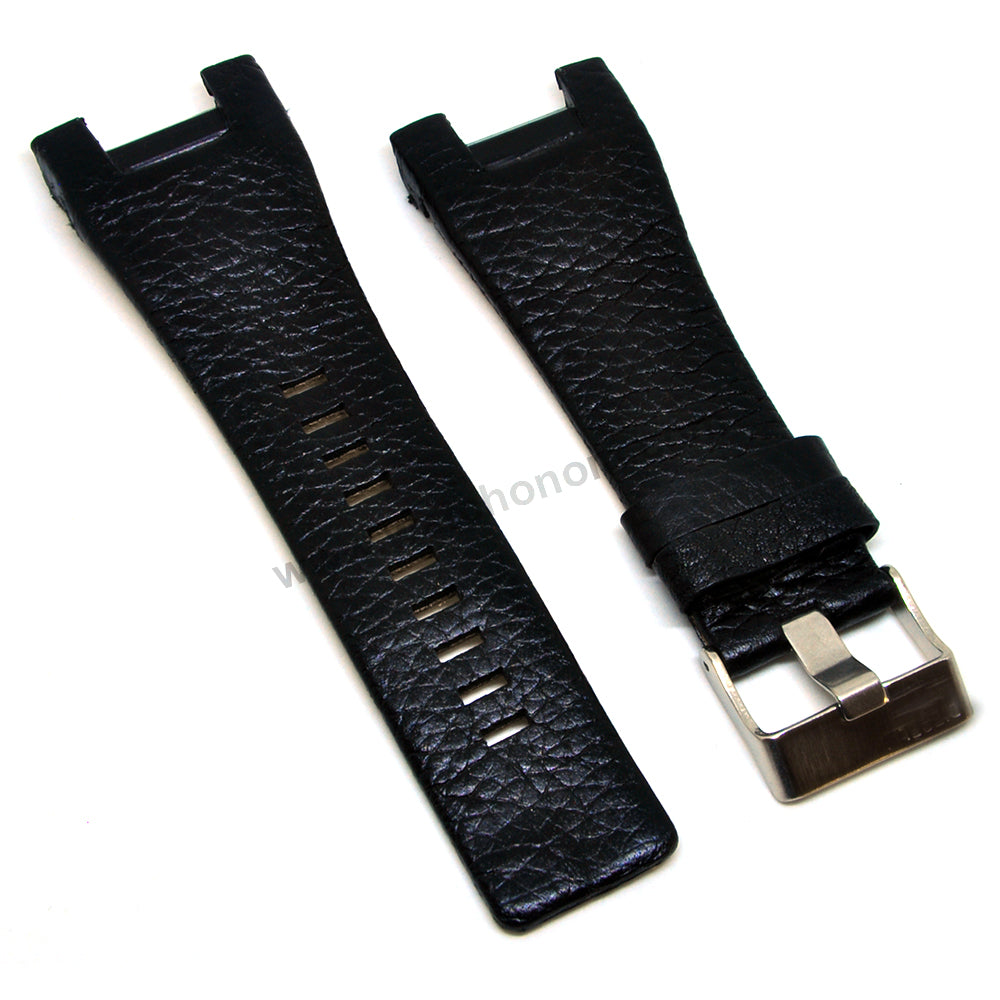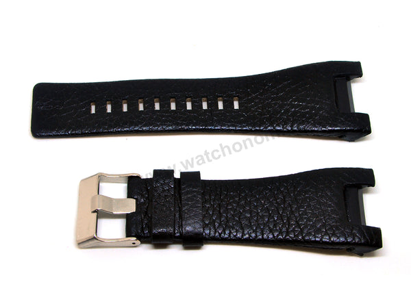 Fits/For Diesel Bugout DZ1215 , DZ1881 , DZ4287 - 32mm Black Genuine Leather Replacement Watch Band Strap